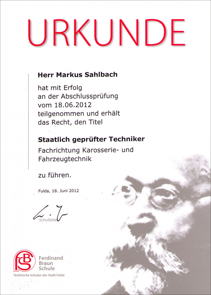 Aufstiegsfortbildung zum staatlich geprüften Techniker für Karosserie- und Fahrzeugtechnik mit dem Schwerpunkt Nutzfahrzeugkonstruktion an der Ferdinand-Braun-Schule in Fulda